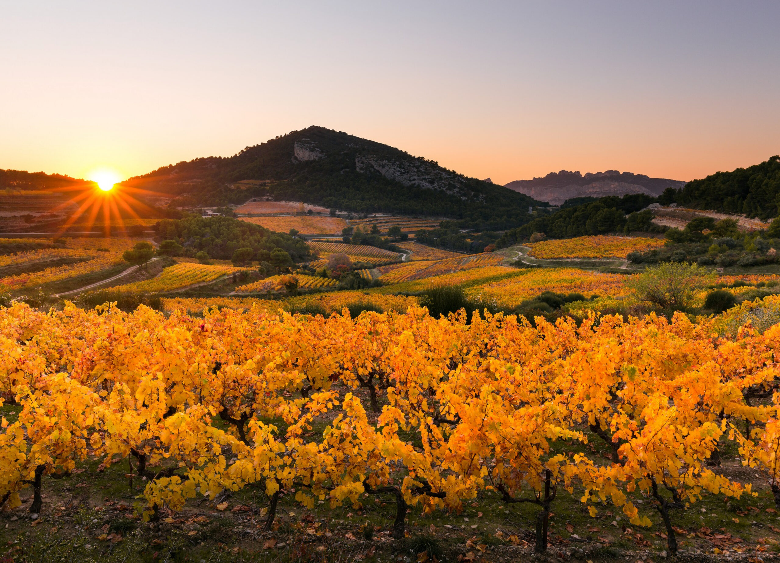 Bij Beaumes de Venise draait alles om respect voor de natuur. Chemische behandelingen en onkruidverdelgers zijn verboden, en de druiven worden altijd met de hand geplukt, zoals het hoort. Bossen en natuurgebieden worden zorgvuldig beschermd en uitgesloten van de wijngaardpercelen, om het adembenemende landschap en de biodiversiteit van de Rhône-vallei te behouden.