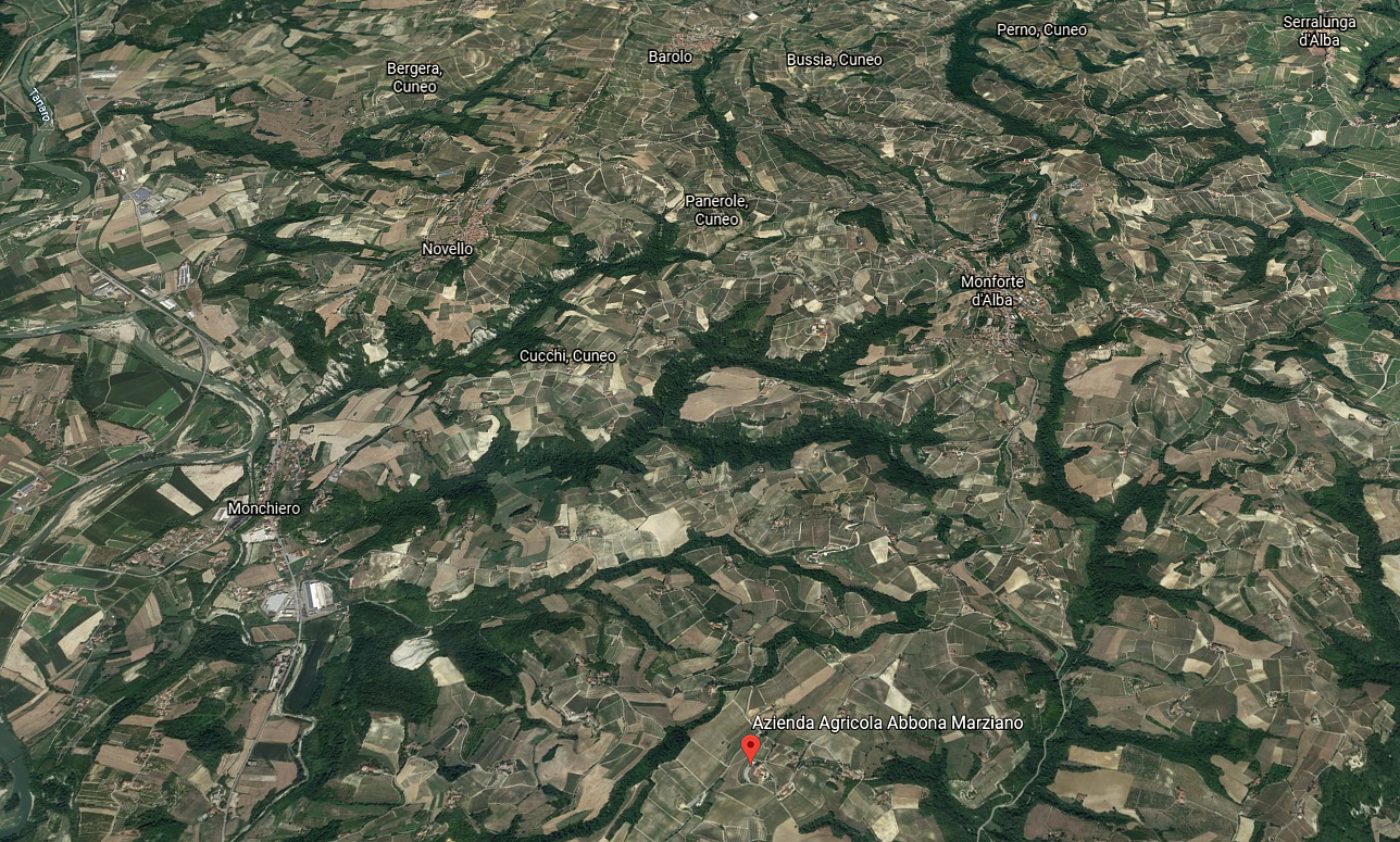 De wijngaarden van Marziano Abbona liggen verspreid over meerdere subzones in de subregio Langhe. Uit deze zone komen de beste Barbera- en Nebbiolo-wijnen. De bodem, gevormd in het Mioceen-tijdperk, bestaat uit kalksteen en klei. De regio is zeker een bezoek waard. Het gebied bestaat voornamelijk uit heuvels en kent prachtige vergezichten. De meeste wijngaarden liggen beschut op hellingen en de warmte van de zon blijft hier goed hangen. Door de hoge luchtvochtigheid is er veel mistvorming. De naam Nebbiolo is hier ook uit afgeleid, ‘nebbia’ betekent mist. Doriolo, Santa Lucia en Rinaldi zijn enkele bekende zones in de regio Langhe. De wijnen zijn vol en stevig en vragen om enige bewaartijd.
